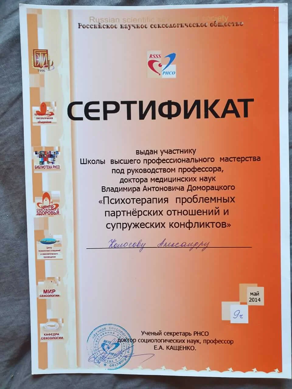 сексологии» (свиделельство);