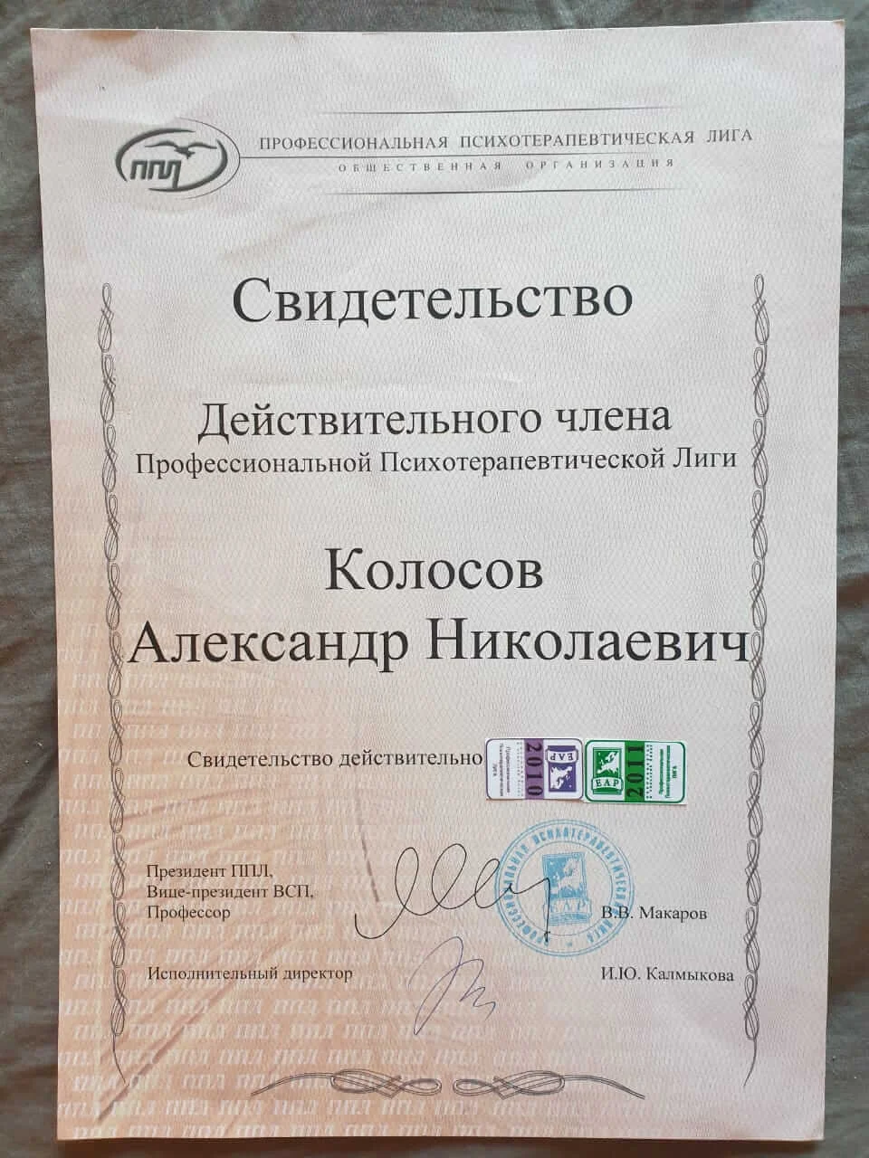 2006 – 2007гг.- Московский Институт Гештальта и Психодрамы (МИГИП) (сертификат).